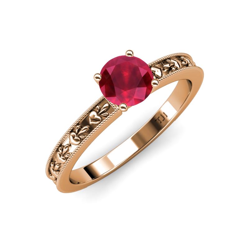Round Ruby Heart Embossed Milgrain Womens Solitaire Engagement Ring 0.95 ct 14K Rose Gold More Details ...