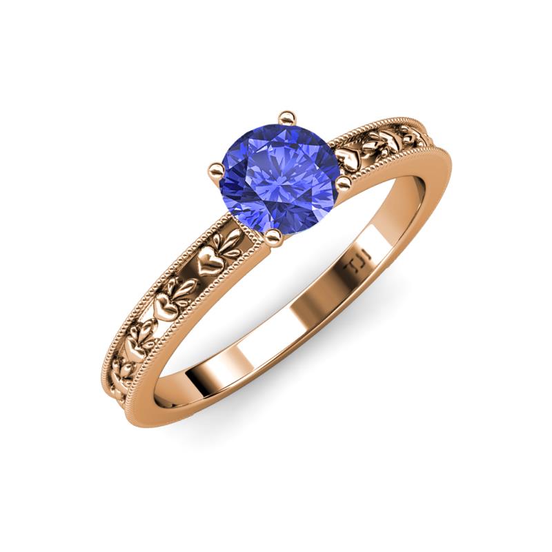 Round Tanzanite Heart Embossed Milgrain Womens Solitaire Engagement Ring 0.92 ct 14K Rose Gold More Details ...