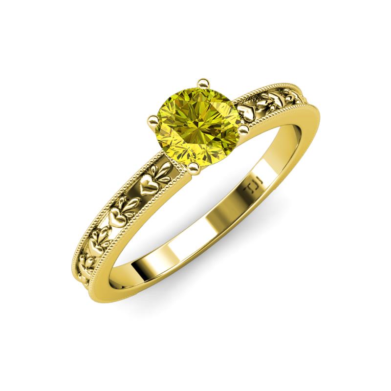 Round Yellow Diamond Heart Embossed Milgrain Womens Solitaire Engagement Ring 0.80 ct 14K Yellow Gold More Details ...