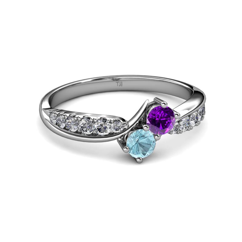 Amethyst and Aquamarine 2 Stone with Side Diamonds Bypass Engagement Ring 0.70 ct tw in 14K White Gold. More Details ...