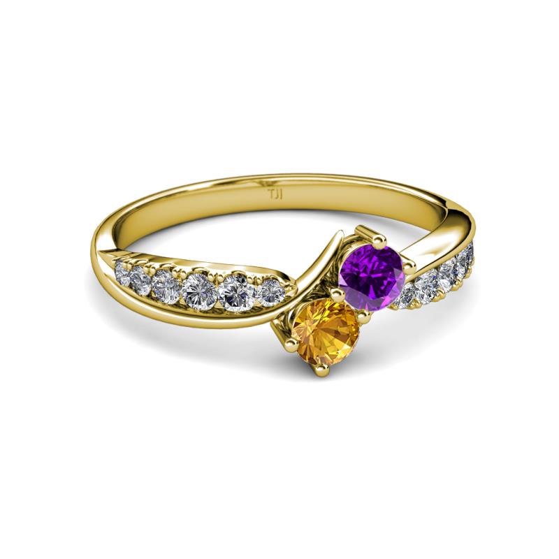 A Bypass Ring with a contemporary twist where Amethyst & Citrine representing love & friendship are beautifully captured in the twisted split with Diamonds illuminating the shoulders signifying your unbreakable bond.