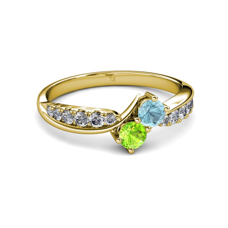 A Bypass Ring with a contemporary twist where Aquamarine & Peridot representing love & friendship are beautifully captured in the twisted split with Diamonds illuminating the shoulders signifying your unbreakable bond.