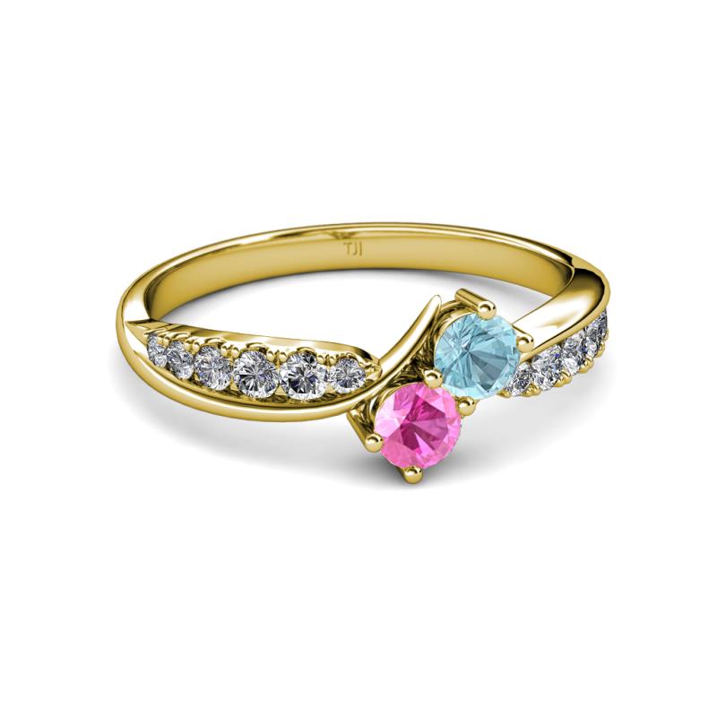 A Bypass Ring with a contemporary twist where Aquamarine & Pink Sapphire representing love & friendship are beautifully captured in the twisted split with Diamonds illuminating the shoulders signifying your unbreakable bond.