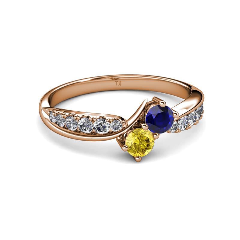 Blue and Yellow Sapphire 2 Stone with Side Diamonds Bypass Engagement Ring 0.86 ct tw in 14K Rose Gold. More Details ...