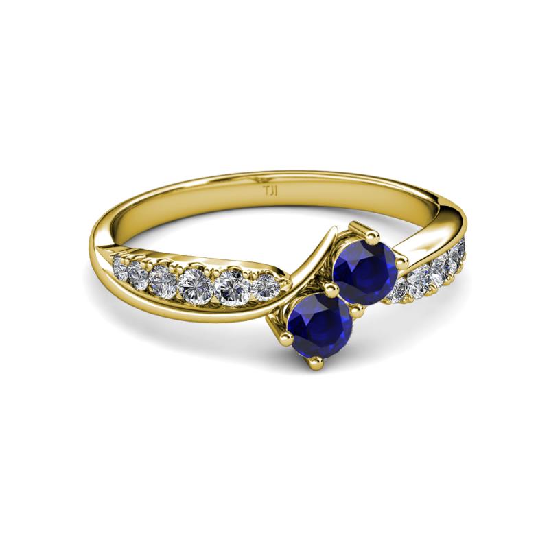 A Bypass Ring with a contemporary twist where Blue Sapphire & Blue Sapphire representing love & friendship are beautifully captured in the twisted split with Diamonds illuminating the shoulders signifying your unbreakable bond.