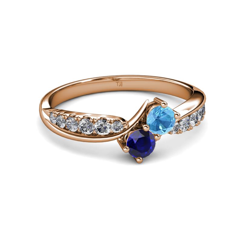 Blue Topaz and Blue Sapphire 2 Stone with Side Diamonds Bypass Engagement Ring 0.82 ct tw in 14K Rose Gold. More Details ...