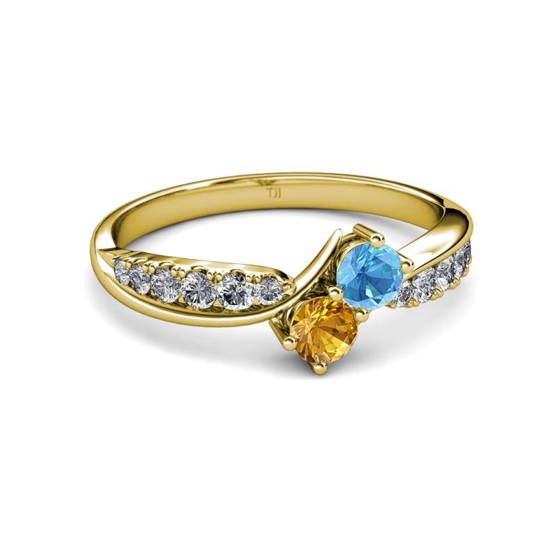 Blue Topaz and Citrine 2 Stone with Side Diamonds Bypass Engagement Ring 0.72 ct tw in 14K Yellow Gold. More Details ...