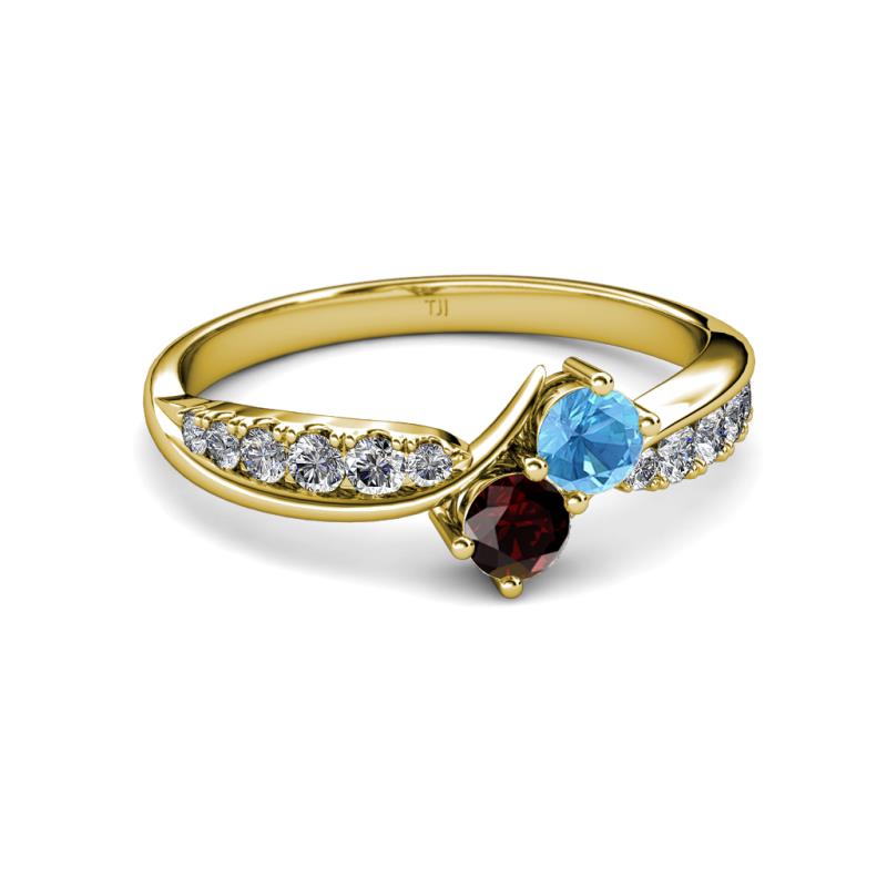 Blue Topaz and Red Garnet 2 Stone with Side Diamonds Bypass Engagement Ring 0.84 ct tw in 14K Yellow Gold. More Details ...