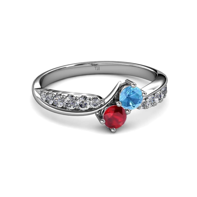Blue Topaz and Ruby 2 Stone with Side Diamonds Bypass Engagement Ring 0.78 ct tw in 14K White Gold. More Details ...