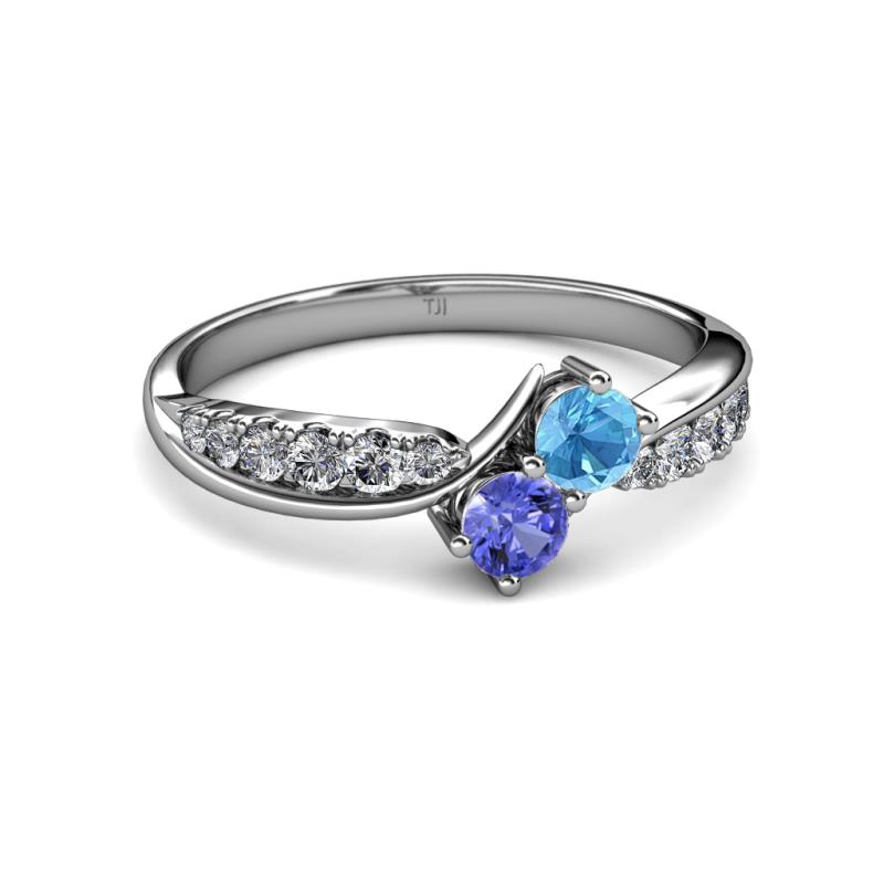 Blue Topaz and Tanzanite 2 Stone with Side Diamonds Bypass Engagement Ring 0.75 ct tw in 14K White Gold. More Details ...