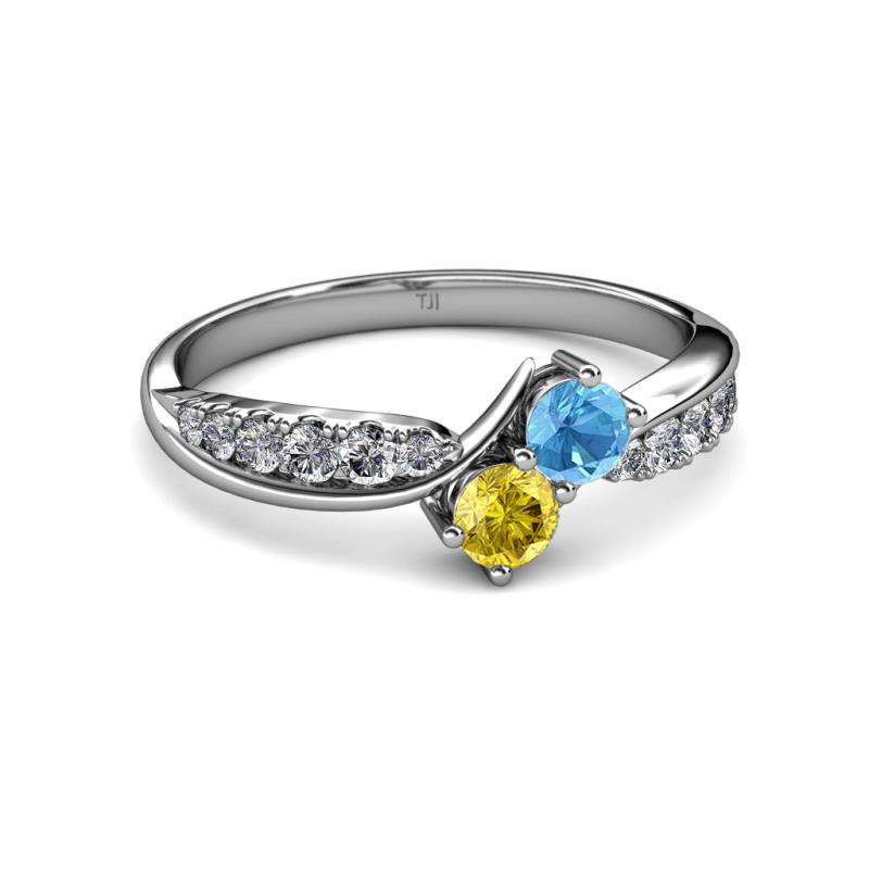 Blue Topaz and Yellow Sapphire 2 Stone with Side Diamonds Bypass Engagement Ring 0.78 ct tw in 14K White Gold. More Details ...