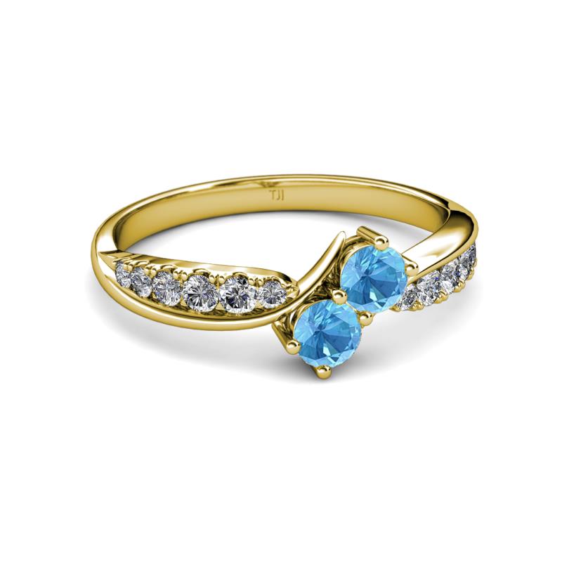 Blue Topaz 2 Stone with Side Diamonds Bypass Engagement Ring 0.74 ct tw in 14K Yellow Gold. More Details ...