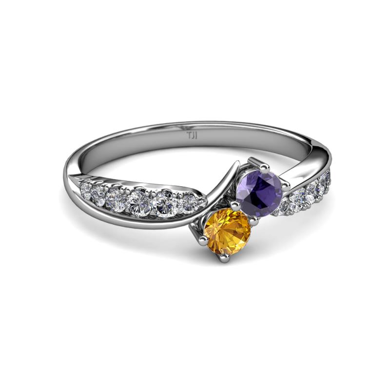 A Bypass Ring with a contemporary twist where Iolite & Citrine representing love & friendship are beautifully captured in the twisted split with Diamonds illuminating the shoulders signifying your unbreakable bond.