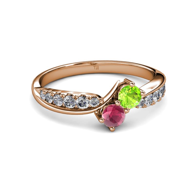 Peridot and Rhodolite Garnet 2 Stone with Side Diamonds Bypass Engagement Ring 0.93 ct tw in 14K Rose Gold. More Details ...