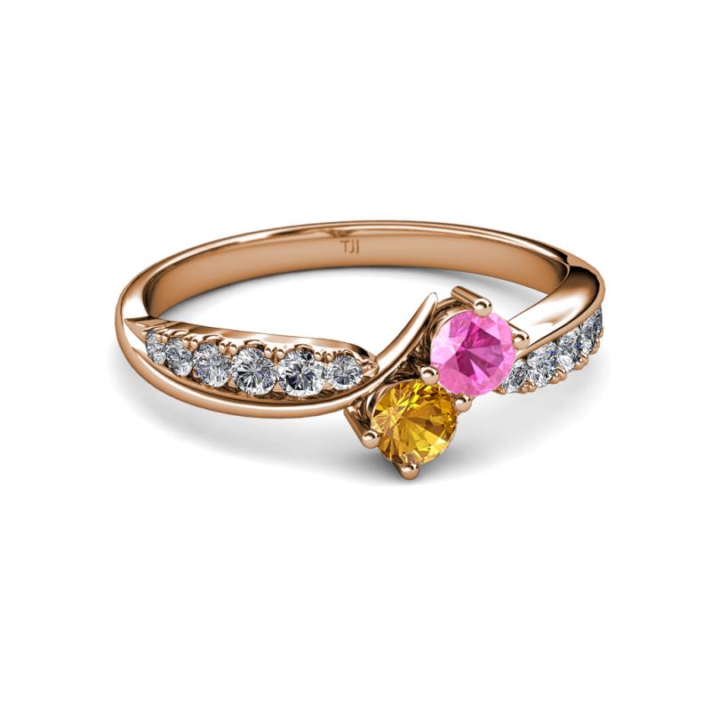 A Bypass Ring with a contemporary twist where Pink Sapphire & Citrine representing love & friendship are beautifully captured in the twisted split with Diamonds illuminating the shoulders signifying your unbreakable bond.