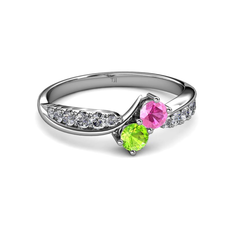 Pink Sapphire and Peridot 2 Stone with Side Diamonds Bypass Engagement Ring 0.88 ct tw in 14K White Gold. More Details ...