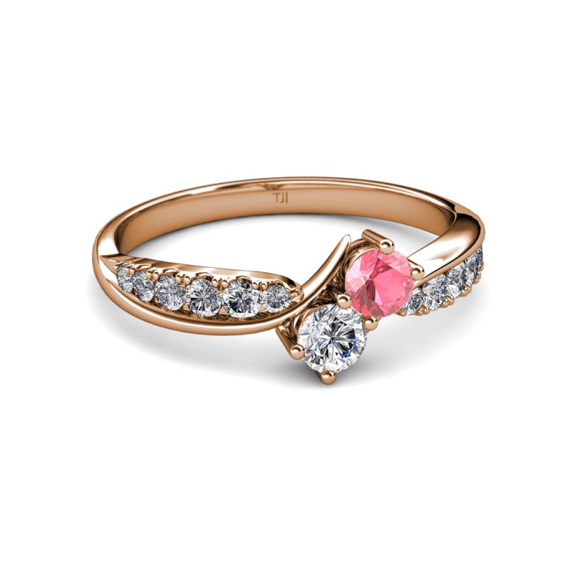 0.75 ctw Pink Tourmaline and Diamond (4.00 mm) accented Natural Diamonds Women Two Stone Bypass Engagement Ring in 14K Rose Gold. More Details ...