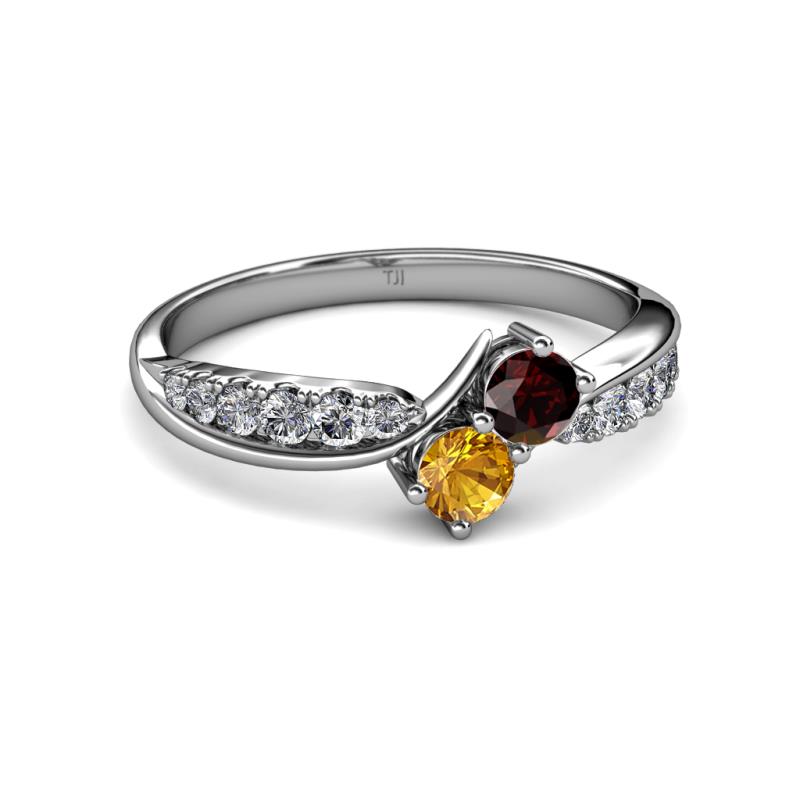 A Bypass Ring with a contemporary twist where Red Garnet & Citrine representing love & friendship are beautifully captured in the twisted split with Diamonds illuminating the shoulders signifying your unbreakable bond.