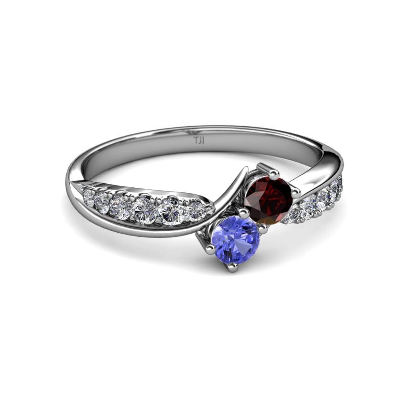 Red Garnet and Tanzanite 2 Stone with Side Diamonds Bypass Engagement Ring 0.85 ct tw in 14K White Gold. More Details ...