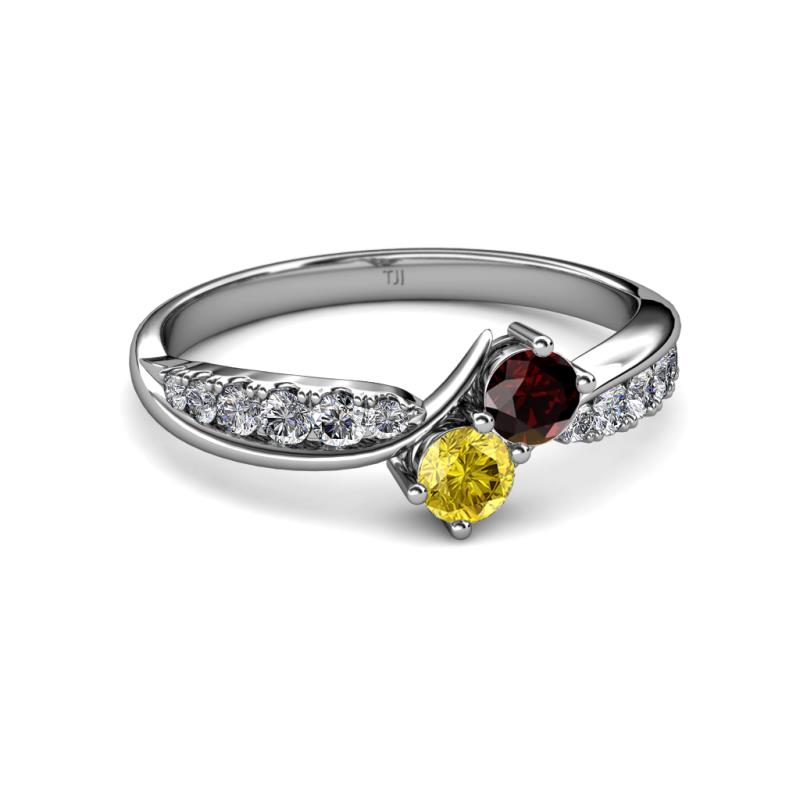 Red Garnet and Yellow Sapphire 2 Stone with Side Diamonds Bypass Engagement Ring 0.88 ct tw in 14K White Gold. More Details ...