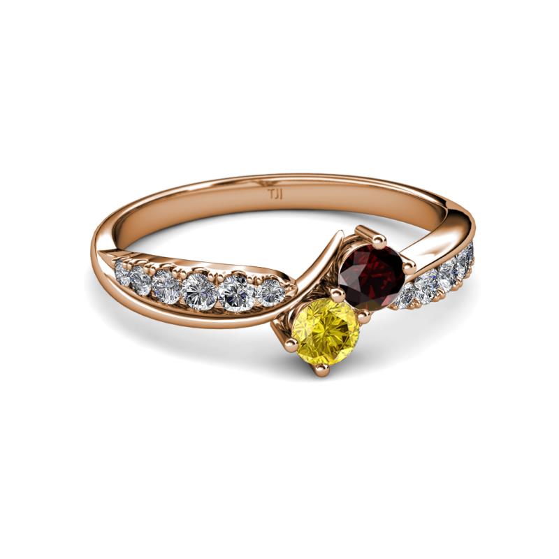 A Bypass Ring with a contemporary twist where Red Garnet & Yellow Sapphire representing love & friendship are beautifully captured in the twisted split with Diamonds illuminating the shoulders signifying your unbreakable bond.