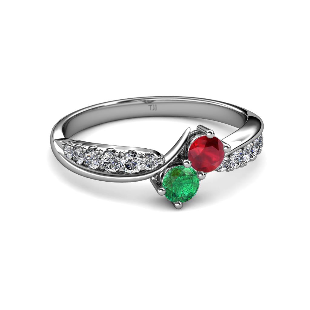 Ruby and Emerald 2 Stone with Side Diamonds Bypass Engagement Ring 0.76 ctw 14K White Gold More Details ...