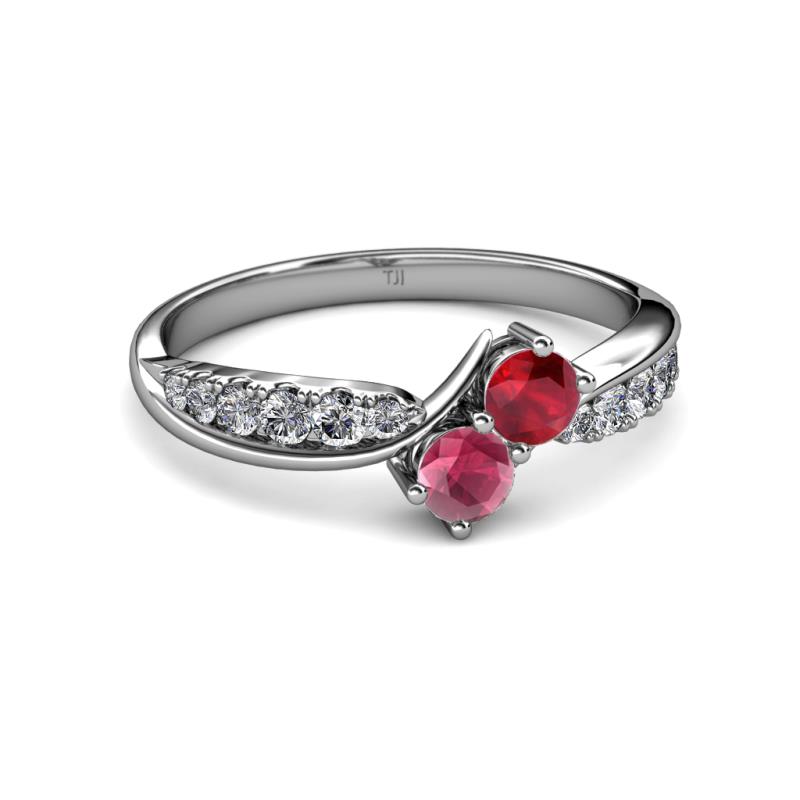 Ruby and Rhodolite Garnet 2 Stone with Side Diamonds Bypass Engagement Ring 0.88 ct tw in 14K White Gold. More Details ...