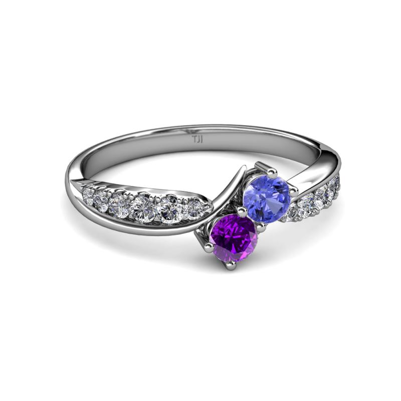 A Bypass Ring with a contemporary twist where Tanzanite & Amethyst representing love & friendship are beautifully captured in the twisted split with Diamonds illuminating the shoulders signifying your unbreakable bond.
