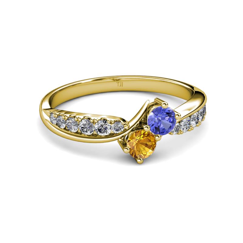 Tanzanite and Citrine 2 Stone with Side Diamonds Bypass Engagement Ring 0.73 ct tw in 14K Yellow Gold. More Details ...