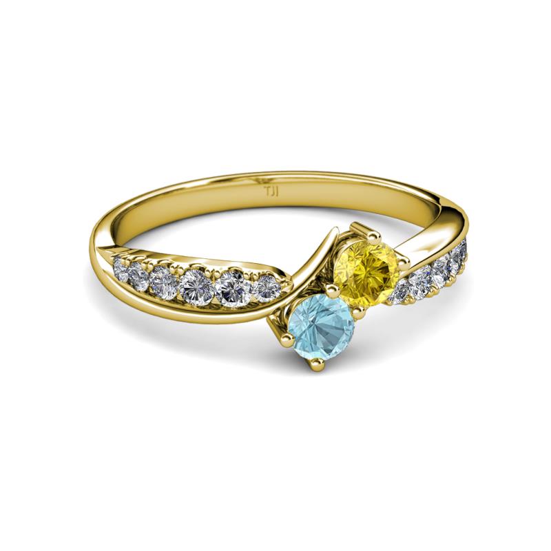 Yellow Sapphire and Aquamarine 2 Stone with Side Diamonds Bypass Engagement Ring 0.76 ct tw in 14K Yellow Gold. More Details ...