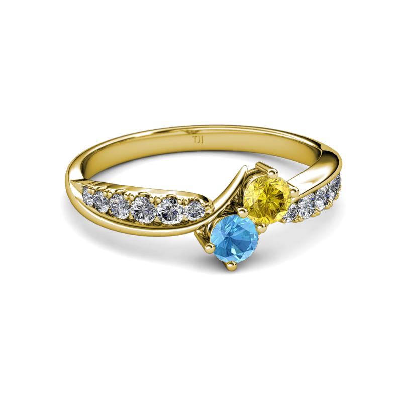 A Bypass Ring with a contemporary twist where Yellow Sapphire & Blue Topaz representing love & friendship are beautifully captured in the twisted split with Diamonds illuminating the shoulders signifying your unbreakable bond.