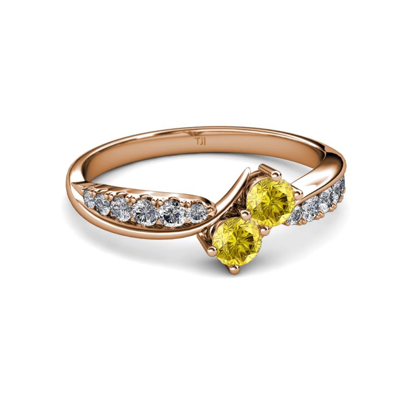 Yellow Sapphire 2 Stone with Side Diamonds Bypass Engagement Ring 0.83 ct tw in 14K Rose Gold. More Details ...