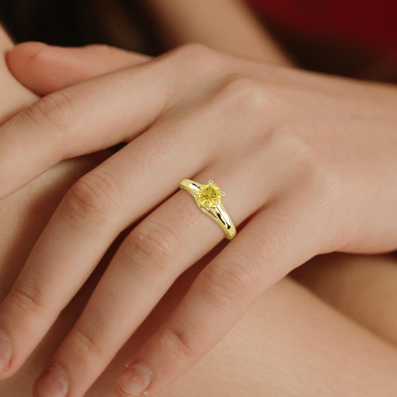 0.53 ct Yellow Sapphire Round (5.00 mm) Prong set Women Solitaire Engagement Ring in 18K Yellow Gold. More Details ...