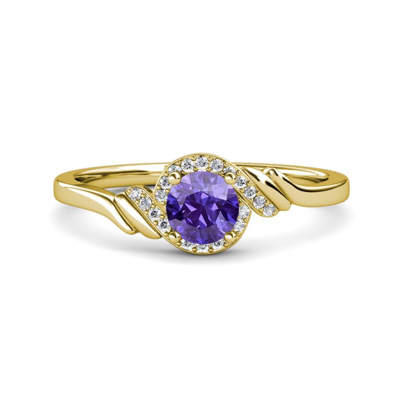 7/8 ctw Round Iolite and Diamond Bypass Womens Engagement Ring 14K Yellow Gold More Details ...