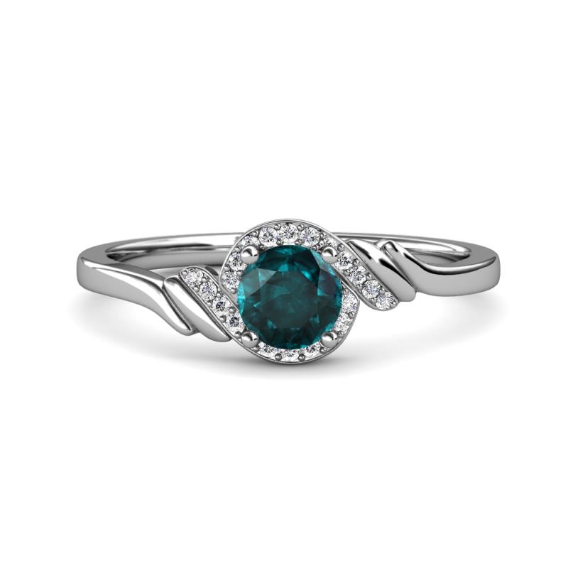 1/8 ctw Round London Blue Topaz and Diamond Bypass Womens Engagement Ring 18K White Gold More Details ...