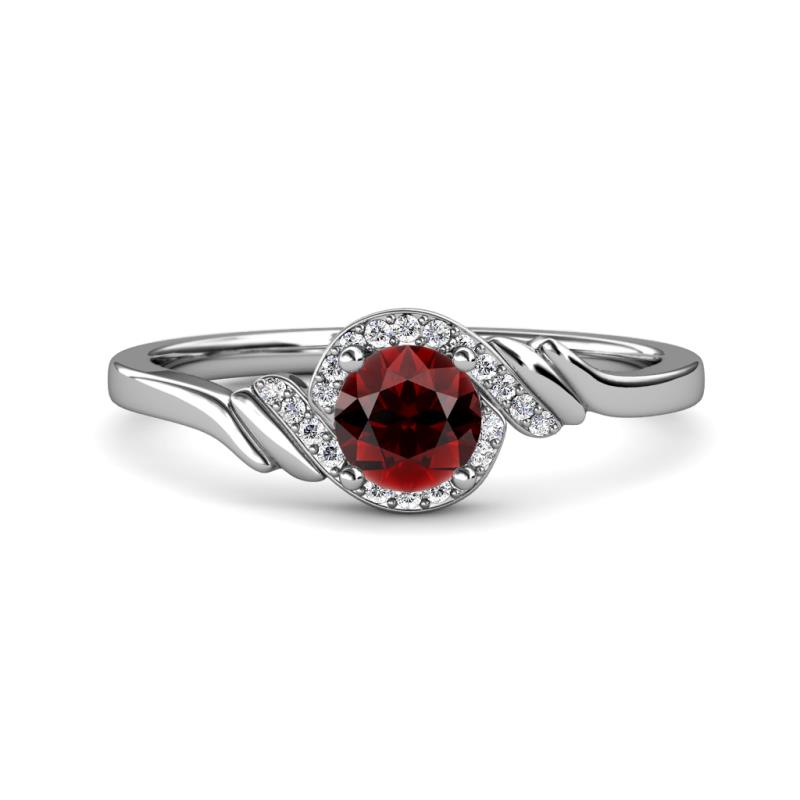 1 ctw Round Red Garnet and Diamond Bypass Womens Engagement Ring 14K White Gold More Details ...