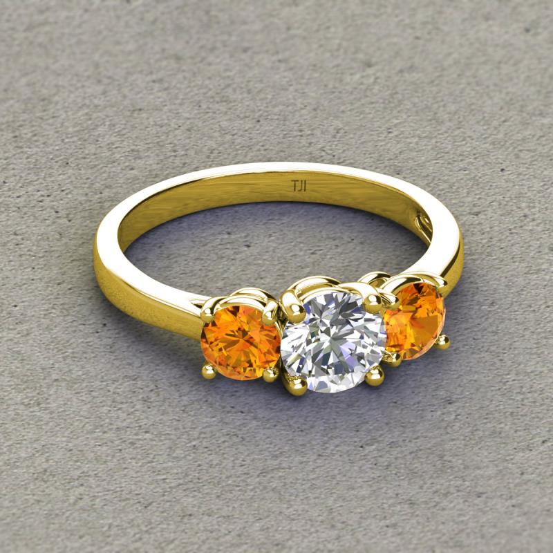 GIA Certified Round Natural Diamond and Citrine 1.80 ctw Women Three Stone Engagement Ring 18K Yellow Gold More Details ...