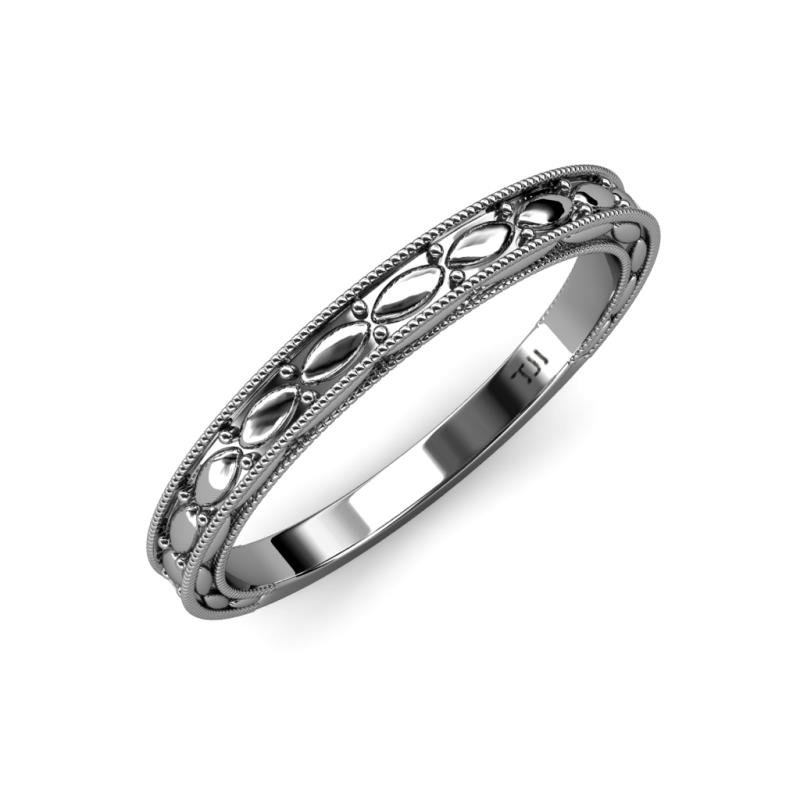 Marquise Design Womens Wedding Band Stackable with Milgrain Work 14K White Gold More Details ...