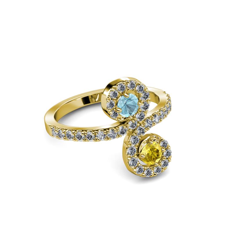 Aquamarine and Yellow Sapphire 2 Stone with Side Diamonds Bypass Engagement Ring 0.73 Carat tw in 14K Yellow Gold. More Details ...
