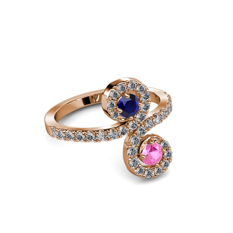 Blue Sapphire and Pink Sapphire 2 Stone with Side Diamonds Bypass Engagement Ring 0.74 Carat tw in 14K Rose Gold. More Details ...