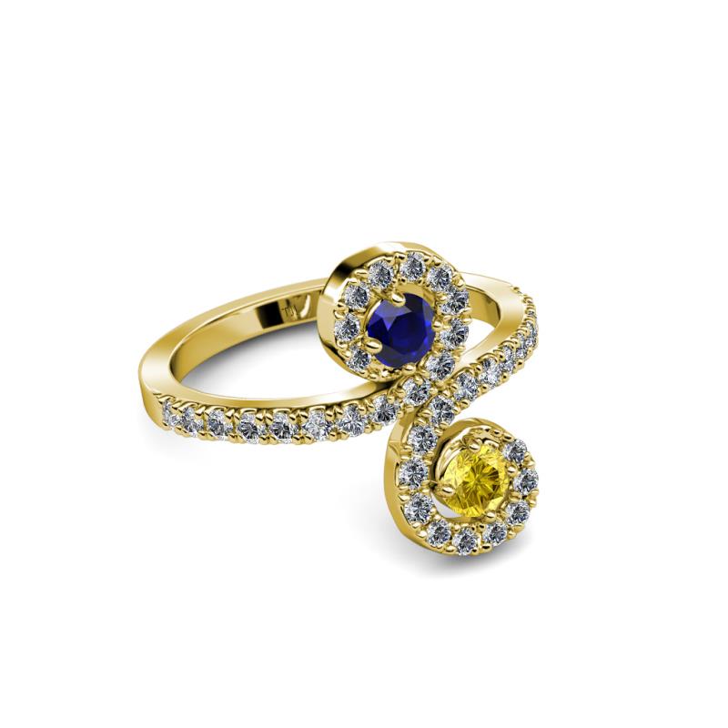 Blue Sapphire and Yellow Sapphire 2 Stone with Side Diamonds Bypass Engagement Ring 0.74 Carat tw in 14K Yellow Gold. More Details ...