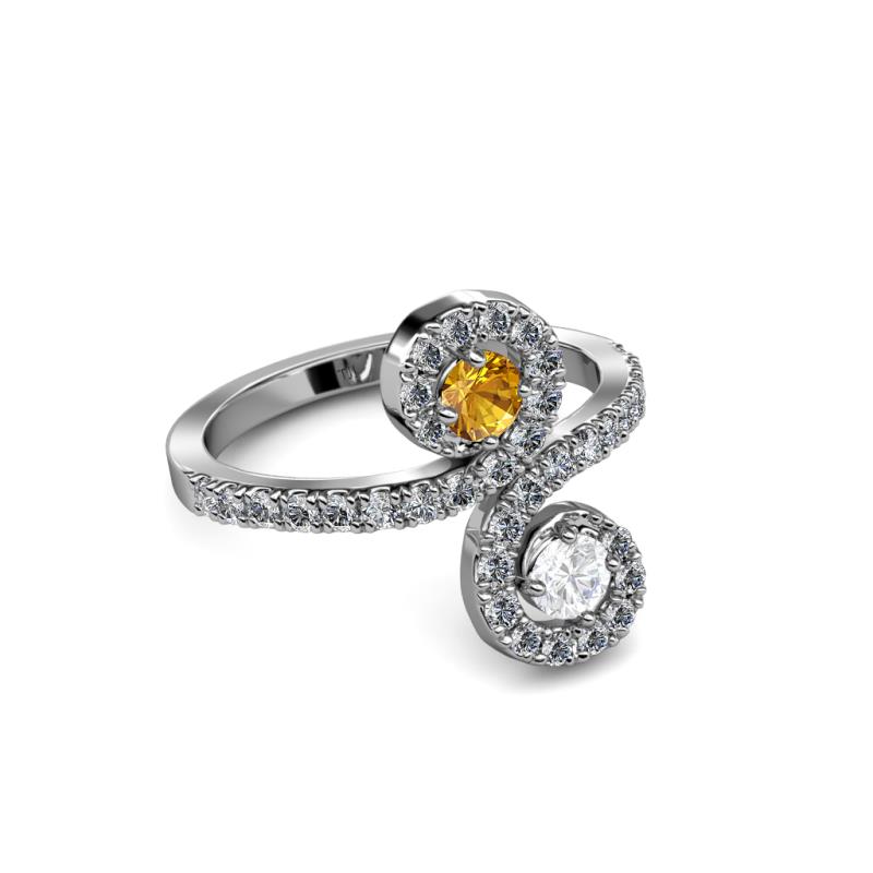 Citrine and White Sapphire 2 Stone with Side Diamonds Bypass Engagement Ring 0.73 Carat tw in 14K White Gold. More Details ...