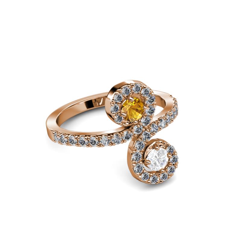 Citrine and White Sapphire 2 Stone with Side Diamonds Bypass Engagement Ring 0.73 Carat tw in 14K Rose Gold. More Details ...