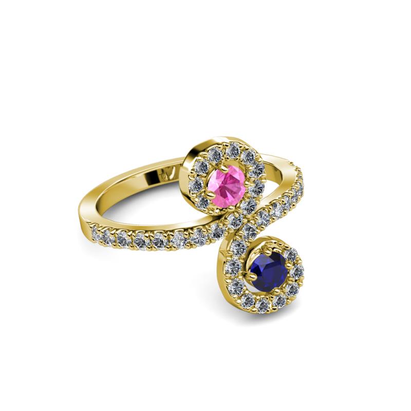 Pink and Blue Sapphire 2 Stone with Side Diamonds Bypass Engagement Ring 0.74 Carat tw in 14K Yellow Gold. More Details ...