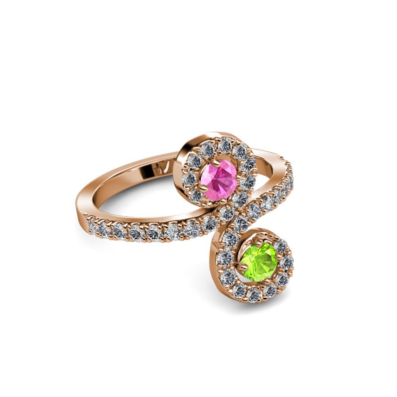 Pink Sapphire and Peridot 2 Stone with Side Diamonds Bypass Engagement Ring 0.76 Carat tw in 14K Rose Gold. More Details ...