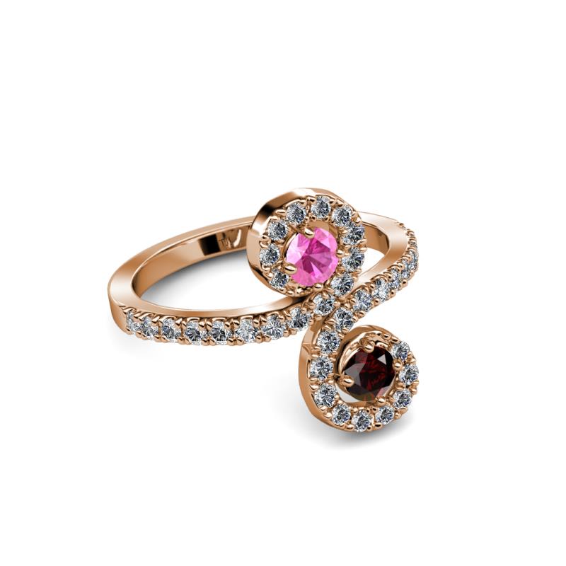 Pink Sapphire and Red Garnet 2 Stone with Side Diamonds Bypass Engagement Ring 0.76 Carat tw in 14K Rose Gold. More Details ...