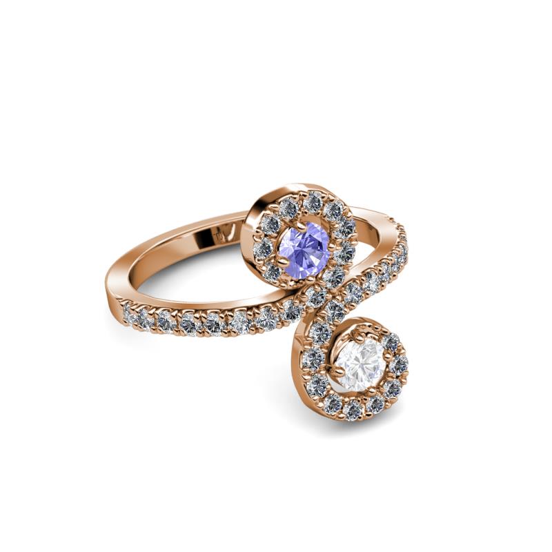 Tanzanite and White Sapphire 2 Stone with Side Diamonds Bypass Engagement Ring 0.74 Carat tw in 14K Rose Gold. More Details ...