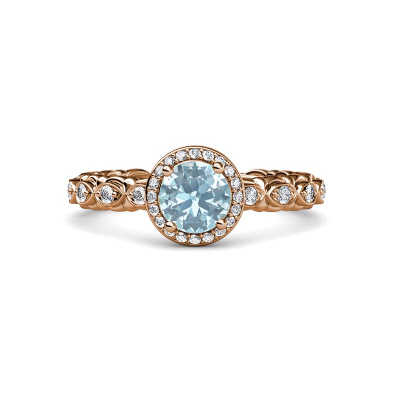 • 28 Round Diamond of 0.25 ctw/1.2 mm and 1 Round Aquamarine of 0.87 ctw/6.5 mm set using Pave and Prong Setting.