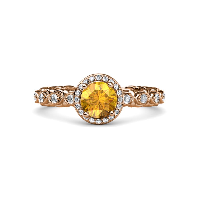1 1/8 ct Round Citrine and Diamond Cascading Scalloped Shank Womens Halo Engagement Ring 14K Rose Gold More Details ...