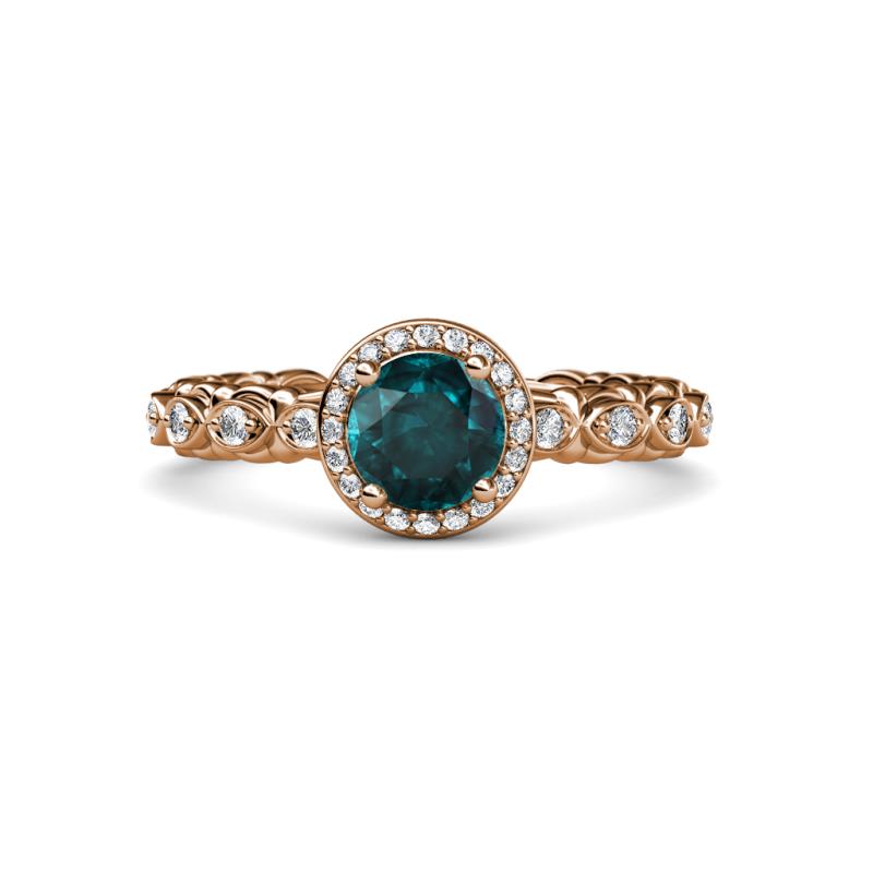 1 1/5 ct Round London Blue Topaz and Diamond Cascading Scalloped Shank Womens Halo Engagement Ring 14K Rose Gold More Details ...
